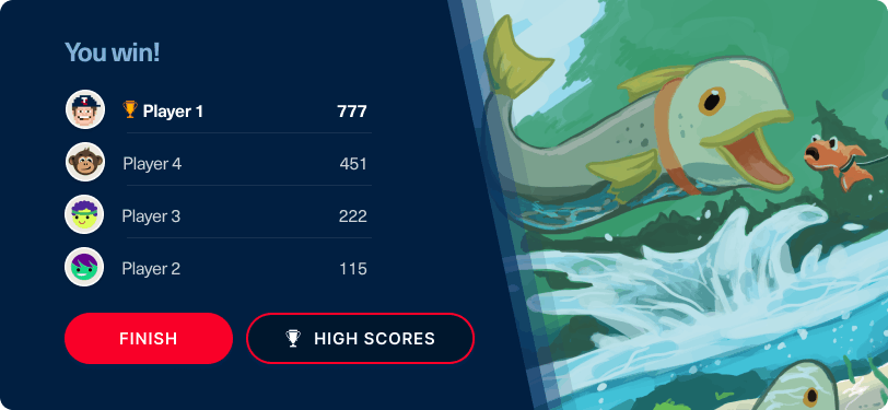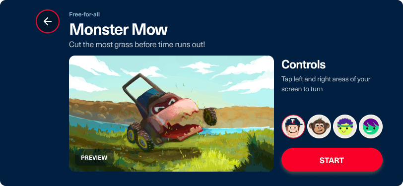 I designed a way to introduce players to live games like the classic Hot Dog Race, as well as join game lobbies to play on-demand games like Batter Up!, Monster Mow, and Fishing Frenzy. I even got to create the illustrations.